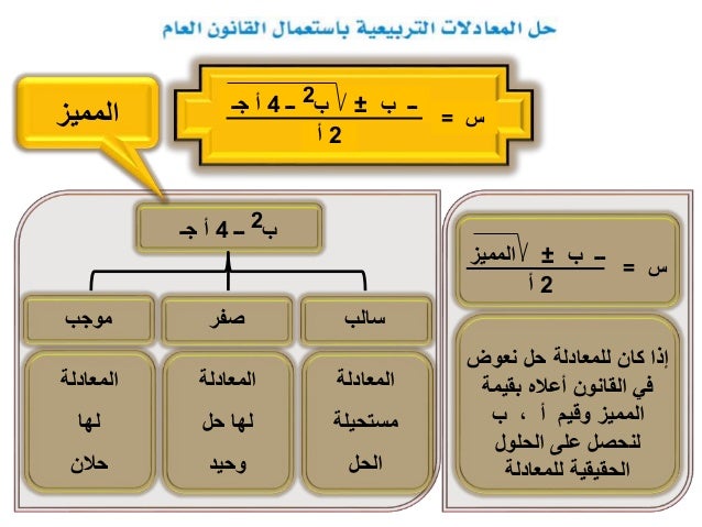حل المعادلات التربيعية باستعمال القانون العام تمييز عدد الحلول Youtube