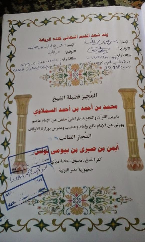 شبيك لبيك ننشر صورة لشهادة وزارة الداخلية للشيخ حازم أبو إسماعيل